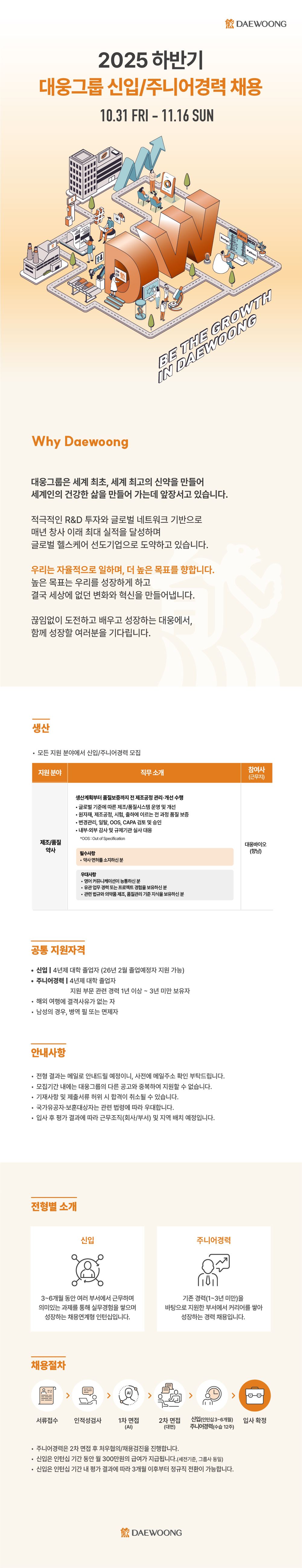 [취업] [대웅제약] 2025 하반기 신입·주니어경력 약사 채용